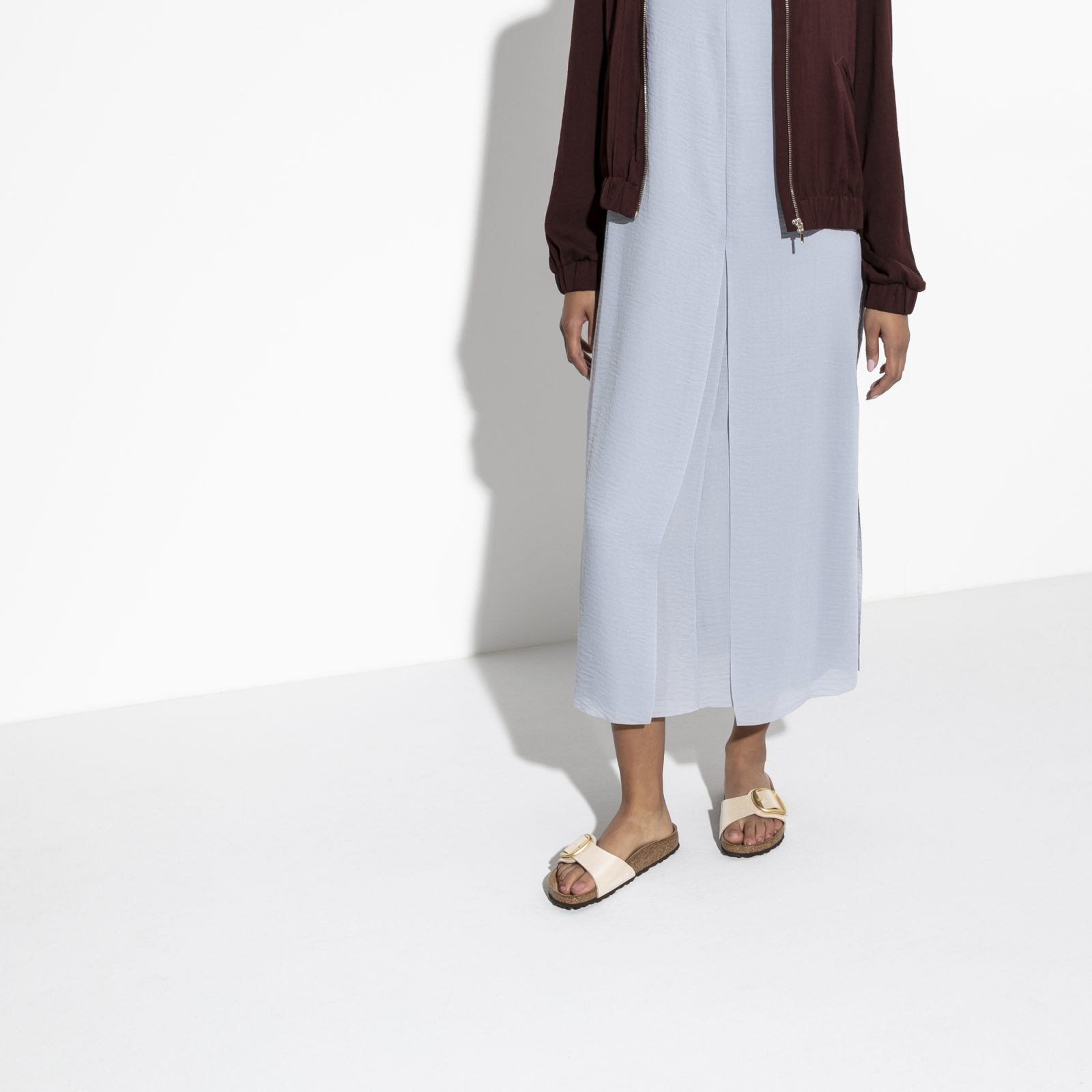 BIRKENSTOCK Madrid je pravi klasik koji oduševljava modni svijet svojim jednostavnim dizajnom. Ovaj model kombinira dva popularna dizajna, sa suptilnim, svilenkastim sjajem i velikom, elegantnom kopčom. Gornji dio je izrađen od izdržljivog sintetičkog materijala Birko-Flor®, ugodnog za kožu. Anatomski oblikovani uložak od plute i lateksa Gornji dio: Birko-Flor® Podstava uloška: antilop Đon: EVA Detalji: remen s velikom, podesivom metalnom kopčom