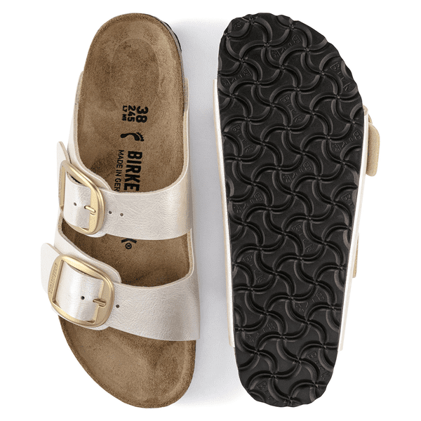 BIRKENSTOCK Arizona je pravi klasik koji već decenijama oduševljava i muškarce i žene svojim bezvremenskim dizajnom. Ova verzija spaja dva popularna dizajna. Ima suptilni svilenkasti sjaj i veliku, elegantnu kopču. Gornjište je napravljeno od materijala Birko-Flor® pogodnog za kožu i otpornog na habanje.