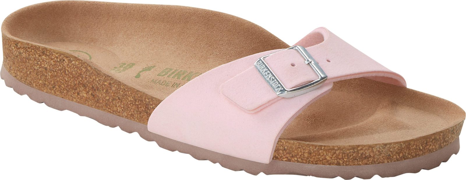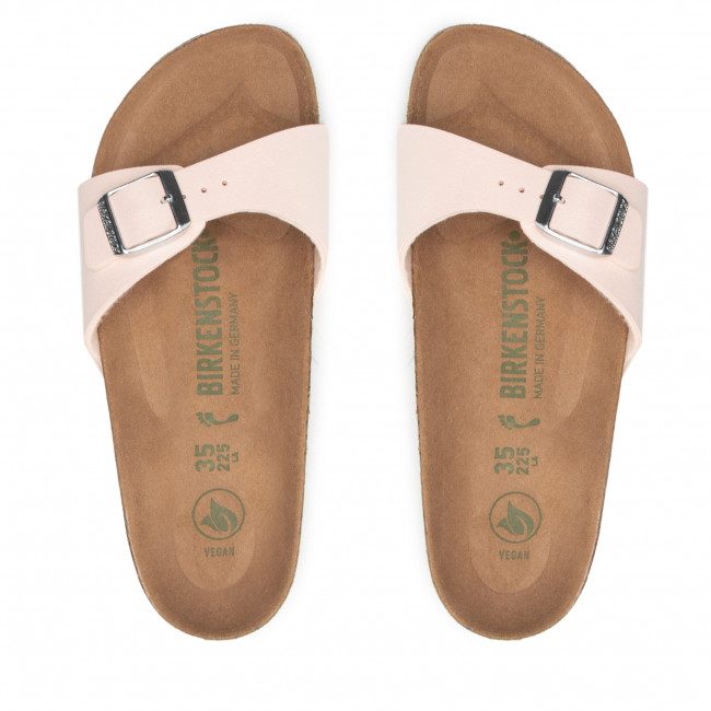 Madrid je pravi klasik koji oduševljava svijet mode svojim minimalističkim dizajnom. Ove popularne sandale dobile su osvježenje u novom materijalu, a sada je dostupna i veganska verzija. U potpunosti ne sadrže životinjske proizvod. Gornji dio je izrađen od izdržljivog sintetičkog materijala Birko-Flor®, ugodnog za kožu, u sofisticiranom nubuk izgledu, koji se može pohvaliti teksturom i bojom koje se gotovo mogu zamijeniti za pravu kožu. Anatomski oblikovani uložak od plute i lateksa Gornji dio: Birko-Flor® nubuk Podstava uloška: mikrofiber Đon: EVA