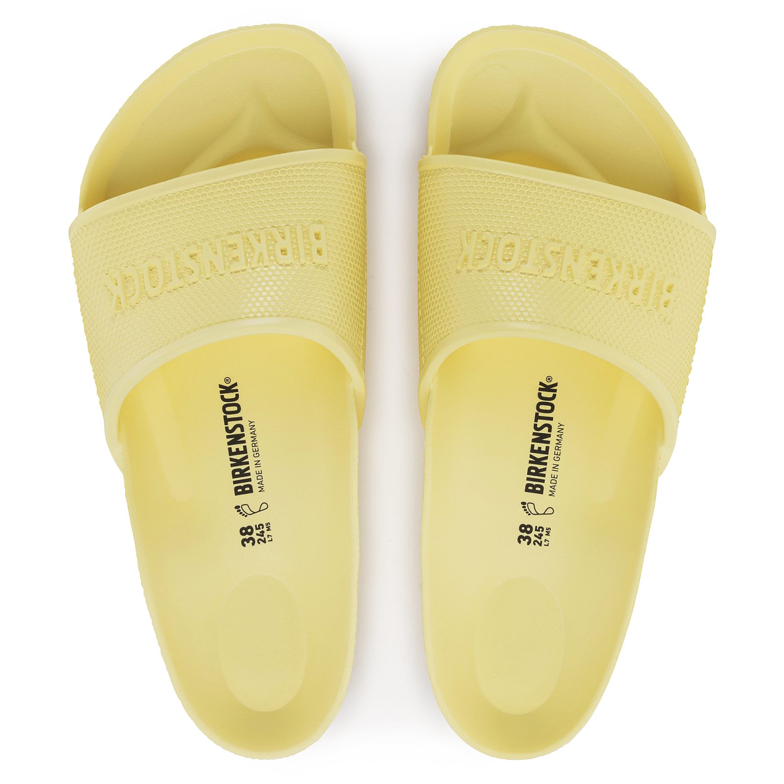 BIRKENSTOCK Barbados su sportski dizajn sandala s reljefnim gornjištem i natpisom logotipa. Po uzoru na sandale od plute, ove sandale su izrađene od jednog komada laganog, fleksibilnog i vodootpornog lijevanog EVA materijala. Anatomski oblikovani BIRKENSTOCK uložak od EVA materijala Gornjište/podstava uloška/đon: liveni komad EVA materijala Detalji: vodootporne, perive, ultra lagane