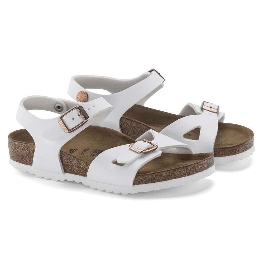 BIRKENSTOCK Rio su sportske, elegantne sandale s remenom za gležanj koji nudi pouzdan i udoban hvat – čak i tokom grube igre. Gornji dio je izrađen od izdržljivog sintetičkog materijala Birko-Flor®, ugodnog za kožu. Anatomski oblikovani uložak od pluta i lateksa Gornji dio: Birko-Flor® Podstava uloška: antilop Potplat: EVA Detalji: jedan remen i remen za gležanj, svaki s pojedinačno podesivom metalnom kopčom